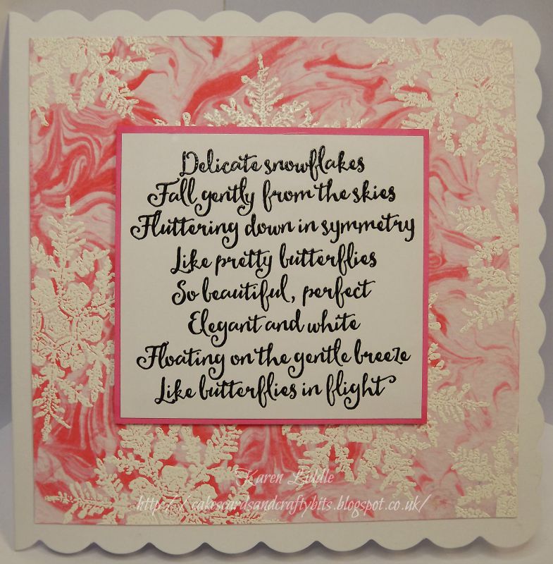 I bought these stamps a couple of years ago and never used them, so I went looking for ideas and came across something similar to this. This was a nice quick card and I covered it with crystal print magic, which is a very fine clear embossing powder with a bit of added sparkle, it really does make the images pop!
